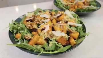 Осень уже полностью вступила в свои права, так что это хорошее время наслаждаться ее щедростью. Приготовим осенний салат с печеной тыквой, грецкими орехами и яблочной заправкой – красочный, полезный и вкусный.