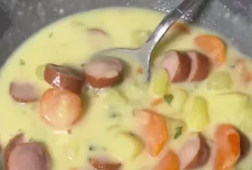 Сливочный суп с охотничьими колбасками, кадр из видео -